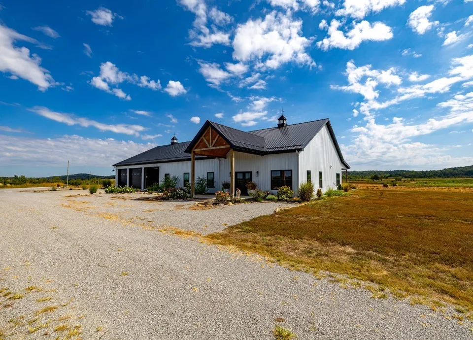This 172+/- acre property in Hopkins County, KY, is a versatile tract that blends country living, livestock potential, and quality hunting opportunities. The centerpiece is a beautiful, tastefully decorated new-construction home featuring 4 BR, 3 BA, and 2,760 sq. ft. of living space. The interior includes a large living area with a stone fireplace, a spacious kitchen with an island, custom cabinetry, a dining area, and warm wood accents throughout. The master suite is complete with a walk-in shower, tub, and walk-in closet, while guest bedrooms and baths provide plenty of room for family or visitors. A sunroom offers scenic views, and a large covered back patio overlooks the acreage. A 2,440 sq. ft. three-bay attached garage with climate control and concrete floors adds convenience and storage. Supporting improvements include a three-stall horse barn with living quarters and fenced pasture, as well as an open four-bay equipment barn. A large yard with a gravel drive and ample parking rounds out the home site.