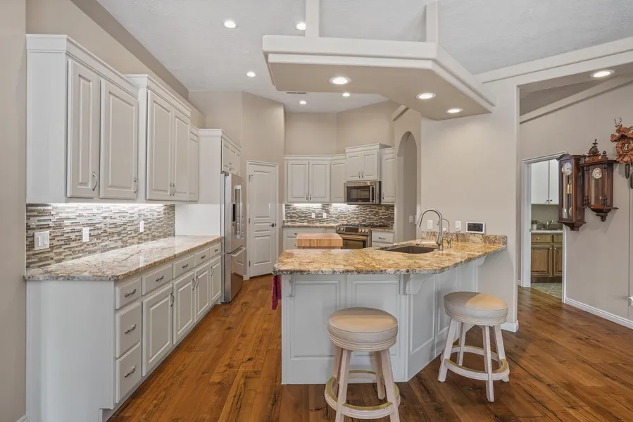 Charming brick home, with 3 bedrooms, a den, & 2 bathrooms near Sunbrook Golf Course. Built in 2003 & beautifully updated in 2017. Lovely painted cabinets, with new doors, roll-out shelves, a roll-out double trash can, granite countertops, butcher block island, stainless steel appliances, interior paint, carpet, maple engineered wood floors, plantation shutters, & custom closets. Enjoy the comfort of the new, upgraded furnace & AC (2019), a jetted tub, a mini split in the primary bathroom & cold storage room, as well as the convenience of a central vacuum, complete with a hide-a-hose that pulls out of the wall & retracts. Have peace of mind with a Generac 22kW whole house generator (2023), high efficiency water heater (2024), water softener (2017), a cold food storage room (in 3rd bay), a 250-gallon water tank, a premium Ecobee thermostat with two extra sensors (2025), & an Omni Shield (2019) which detects carbon monoxide, smoke alarms, water sensors, & high temperatures in the attic. Relax & experience the beauty of the lush HOA-maintained yard.
