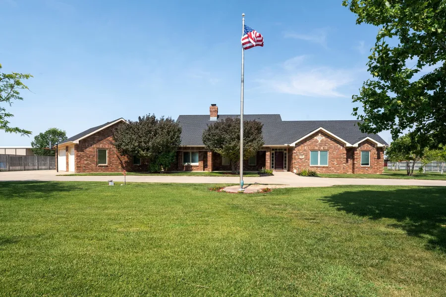 Experience country living at its finest in this custom-built home within Canyon ISD! Nestled on 3.46 acres, with Amazing 30x50 insulated shop with Full bathroom. This stunning property offers a perfect blend of style and functionality. With 4 bed, 5 bath, & 3-car garage, every detail has been thoughtfully designed. Hydronic floor heat, dbl see though FP. security system, RV parking, circular drive in front. The home features hardwood floors alongside stamped and stained concrete, soaring vaulted ceilings in the living room, and high ceilings throughout. Beautiful real hardwood maple cabinetry and built-ins in every bedroom closet provide ample storage. The kitchen and bathrooms showcase granite countertops, while the basement adds extra living space with a kitchenette and 3/4 bat The spacious walk-in pantry is a dream for any cook. Plus, radiant floor heating keeps your feet warm all winter! Soft water and reverse Osmosis and top notch plumbing to boot!! This custom home was built to last.!!!