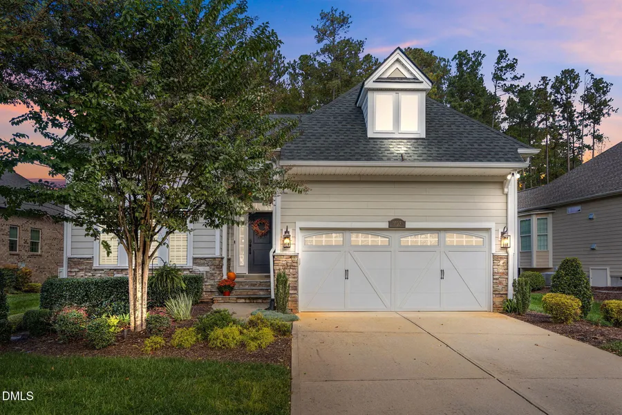 Conveniently located in the sought-after Hasentree Villas community. This open-concept ranch-style home offers one-level living at its finest, and is situated on a .33-acre homesite with a fenced, wooded backyard. Outdoor living is enhanced by a screened-in porch and a stone paver patio, perfect for relaxing or entertaining. The HOA maintains both the front and backyard—including mowing, fertilization, weed control, bush trimming, seeding, and irrigation—providing truly low-maintenance living. Luxury vinyl plank flooring and soaring ceilings welcome you into this spacious open and bright floor plan. The well-equipped kitchen features custom full overlay cabinetry with soft-close drawers and doors, under-cabinet lighting, quartz countertops, and a stylish tile backsplash. A large island with barstool seating is highlighted by modern pendant lighting, while stainless steel appliances, a commercial-grade range hood, and a large walk-in pantry will delight the family chef. The adjoining family room is perfect for entertaining, with custom built-in cabinets and bookcases flanking the gas log fireplace. Expansive sliding glass doors extend the living space to the screened porch, where you can relax while enjoying views of the wooded, fenced backyard. The owner's suite features a true haven with tray ceiling, recessed lighting and adjoins a spa-like bath with tile flooring, a granite topped vanity with dual sinks and an oversized walk-in tile shower with bench. The custom closet is a dream with built-ins, dresser, and upper cabinetry, and even offers direct access to the laundry room for added convenience. Additional highlights include plantation shutters, ceiling fans in all bedrooms, family room, and screen porch, interior sensor light switches for the laundry, pantry, closet, and garage, a water softener system, landscape lighting, and RING security including doorbell, motion flood lights, and a camera above the garage. Residents of Hasentree enjoy resort-style living and world-class amenities, including a Tom Fazio-designed course, multiple pools with a waterslide, tennis and pickleball courts, spa and fitness facilities, a scenic fishing pond, plus a vibrant clubhouse with dining and year-round activities. Surrounded by 350+ acres of open space and scenic trails, Hasentree offers a perfect blend of elegance, recreation, and family-friendly living—all within minutes of Falls Lake and convenient to Raleigh. Come experience it in person—schedule a private showing today!