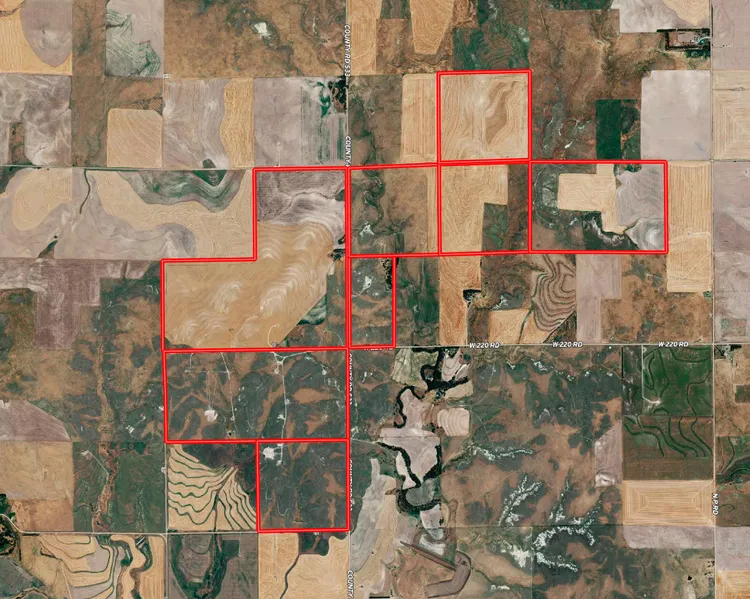 Investment farm located in West Central Kansas for sale. This Ness County, KS land spans approximately 1737 acres, and is a combination of tillable land and native grass pasture. Wild Horse Creek meanders through a portion of the ranch, drawing in a variety of wildlife. The current owner recently replaced all of the fencing around the pastures. There is an uninhabitable homestead, and 5 old barns located on the property.