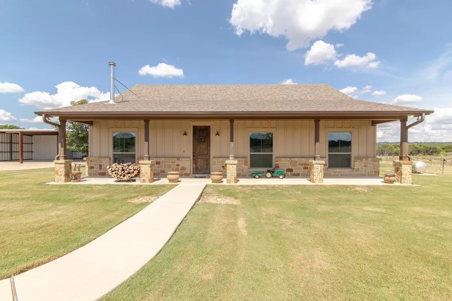 HUNT FROM YOUR BACK PORCH! Multiple barns/shops! DREAM PROPERTY for those wanting to spend time outdoors-work or play. Lovely home located at end of quiet country road provides privacy & has rustic charm w/custom cabinetry, vaulted living room ceiling, easy-to-care-for concrete floors, granite counters, wood burning fireplace, spray foam insulation, dehumidifier, copper sinks in kitchen/baths, walk-in closets, large walk-in pantry, gutters, sprinklers, large covered front & back porches, crushed granite driveway, electric gate, tankless water heater. Cross fenced w/lots of gates & water in each pasture. In addition, there's a 40x50 carport w/10x12 storage room, 40x60 shop w/electric (plumbed for bath), 40x75 equipment storage/parking w/electric & RV parking, 20x60 building for batting cage but could serve many purposes & horse barn. Separate electric meters for house/outbuildings. Backs up to Corps property w/access to Lampasas River. Abundance of wildlife. No restrictions. Ag exempt.