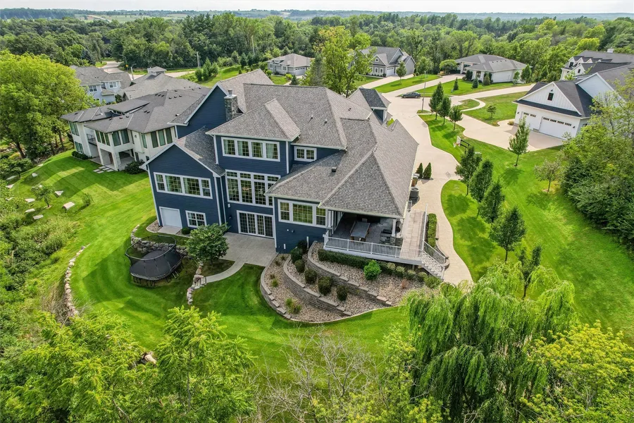 Nestled on a 1.36-acre estate lot on a private WDM cul-de-sac in Quail Park Woods! Almost 8500 square feet with 6 bedrooms, 6 baths and 5 garages. Main floor features a spacious living room with floor to ceiling windows, allowing an abundance of light. The formal dining room offers sophisticated entertainment space. Main floor primary suite features a sitting area, bath with luxurious soaker tub, large walk-in shower, heated floors, large custom walk-in closet and a private laundry room. Spacious gourmet chef's kitchen features beautiful double island w/abundance of cabinets. 2 dishwashers, pantry and another large walk-in pantry with an opening to garage for easy access unloading groceries. Thermador appliances. Beautiful library/office. Second floor has a spacious ensuite bedroom and jack & jill bathrooms. Look for the custom slide within the framing from the 2nd level down to lower-level playroom! Spacious 2nd floor laundry. The lower level features a huge bar, game area, spacious family room and two more bedrooms, one is a ensuite bedroom and another with 4 built-in bunk beds. 4 garages + one tuck under garden garage. Fantastic entertaining outdoor kitchen & bar set up with ceiling heaters, fireplace, smoking grill, frig & more! This leads to a stone fire pit surrounded by trees. Smart home technology throughout. Security system. No details are spared. This home is truly one of a kind!