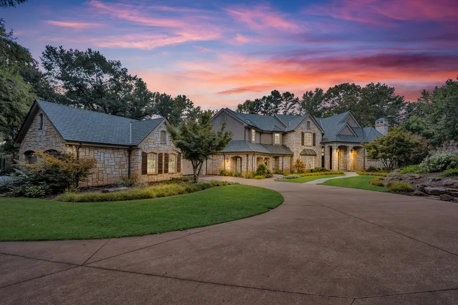 The primary suite is a true retreat, offering a spa-like bath, soaking tub, massive walk-in closet, and serene dressing area. Additional highlights include a formal dining room, private study, family room, gym, upstairs game room, media room with fireplace and wet bar, and three upstairs guest suites, each with private, spa-inspired baths. Step outside to your own private resort. A shimmering pool, timber-frame pavilion, full outdoor kitchen, tennis and pickleball courts, firepits, and multiple seating areas make entertaining effortless. The crown jewel: an approximately 34 acre fully stocked lake with a beautiful fountain, floating dock, sandy beach, and an elegant cedar pergolaperfect for fishing, gathering, or relaxing by the water. This one-of-a-kind property is privately tucked away, yet just minutes from shopping and conveniences. An additional renovated home and up to 20 more acres can be purchased with the sale to expand your private retreat.