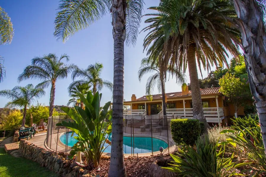 Exquisite, must-see 2834esf Mediterranean-style custom home on 15+ acres with a certified organic, commercial citrus grove. Located in the beautiful and lush Rincon Ranch area of the San Diego backcountry, the property is private yet close to many desirable amenities. This spacious home has 4 bedrooms, 4 bathrooms, with one bedroom and bathroom part of a private, self-contained guest quarters overlooking a charming garden area. There is a bright, open upstairs floor-plan with beamed ceilings and skylights throughout, two fireplaces, a chefs kitchen with stainless steel appliances, ample prep space, dual dishwashers, and a large pantry. A charming sitting nook sits off the kitchen and the open family/living room opens onto a beautiful 970 covered veranda. The spacious and well-appointed master bedroom also opens onto this spectacular terrace, which is the perfect place for relaxing, taking in the breathtaking views of Pauma Valley, or entertaining with family and friends. Down a few steps is a lovely and serene pool area which is next to a sizeable manicured lawn, perfect for family enjoyment and play. Other features of the home include Spanish tile, plentiful storage via built-in cabinetry, a bonus room in the walk-in crawl space, perfect for a studio, and soothing breezes circulating throughout. The home offers enough space and privacy for multi-generational family living and options for home office or home schooling.