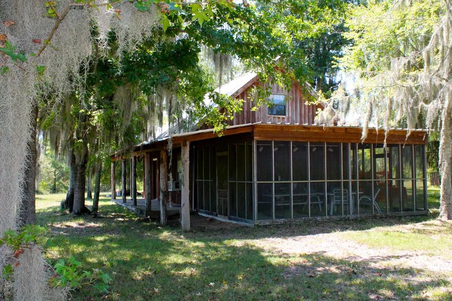 -House is surrounded by open wildlife fields and picturesque trees draped with Spanish moss.