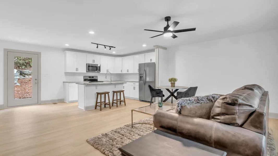 Just around the corner from Nickajack Lake and only 25 minutes from Chattanooga, this beautifully renovated home offers both peace and convenience. Set on a quiet, private lot, this home has been thoughtfully transformed with major updates throughout including a new roof, new windows, new HVAC, new water heater, new plumbing, and updated electrical, giving you peace of mind for years to come. The covered front porch is perfect for enjoying morning coffee or crisp evenings with glimpses of the lake, while the private backyard creates a relaxing space to unwind or entertain. Inside, you'll love the open floor plan that's designed for both gathering and everyday living. The kitchen shines with a granite countertops, brand new stainless steel appliances and plenty of space to cook, connect, and create memories. Upstairs, the primary suite is your personal retreat, complete with a beautifully tiled shower. Two additional bedrooms and a full bath can also be found on the upper level. Downstairs offers incredible flexibility featuring a fourth bedroom, an additional full bath ideal for guests, and two bonus rooms ready to fit your lifestyle whether that means a home office, media room, gym, or playroom. So if you're searching for a peaceful getaway or a forever home with modern comforts, this one is worth a closer look!