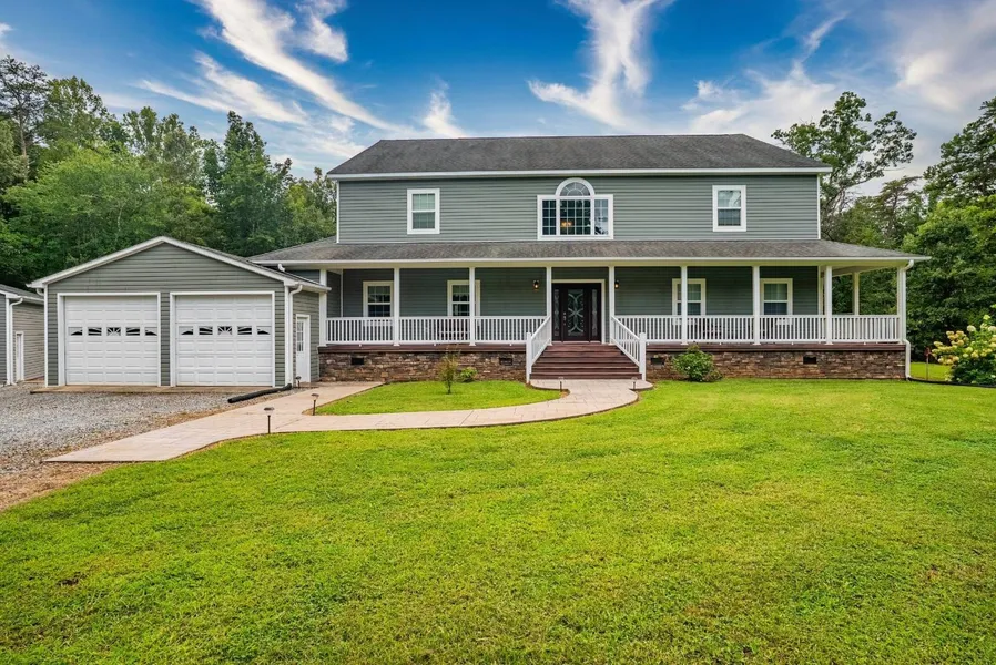 This meticulously constructed custom home is truly a one of a kind. Boasting over 5700 finished sq ft, nestled on almost 20 private acres and a small pond. This home is a dream with its grand foyer, open stair case and railings, massive room sizes, hardwood floors throughout, primary bedroom w/his and her closets, huge bath featuring custom shower, toilet closet, separate sink vanities - one with a dressing vanity, great room area that is wide open from the custom kitchen that includes tons of cabinets, granite and a stone faced island that matches the stone gas fireplace and columns in the den. There are so many upgrades in this home such as the coffered ceiling in the den, the picture frame molding in the dining room, 10 ft ceilings, composite decking on front/side porch and rear deck. There is also an attached 2 car garage and a detached 36 x 40 garage with electricity and 12 ft ceilings. You will have to visit the property to see everything it has to offer!!
