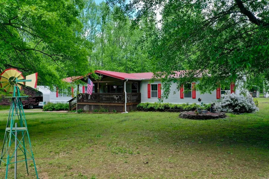 Peaceful setting and extremely well-maintained 3 bed, 2 bath 2128 sq ft mobile home nestled on 4.34 acres in a riverfront neighborhood. This spacious home features two living areas, a large covered front and back porch, and a generous deck leading to an above-ground pool perfect for relaxing or entertaining. The property includes a 25x36 wired (220V) shop, shed, two double covered carports, a goat shed and a chicken coop, with partial fencing for added convenience. Enjoy the shade of numerous mature trees, beautiful landscaping, and fiber optic internet availability. Recent updates include a metal roof, water heater (less than 6 years old), and HVAC (less than 8 years old). Ideal location for outdoor enthusiasts just 1 mile from Libby Shoals Walk-in Fishing Area and 2 miles from Lobo Landing Boat Launch on the Little Red River. 6 miles to Dam Site Recreation Area and Marina on Greers Ferry Lake. Take a look!