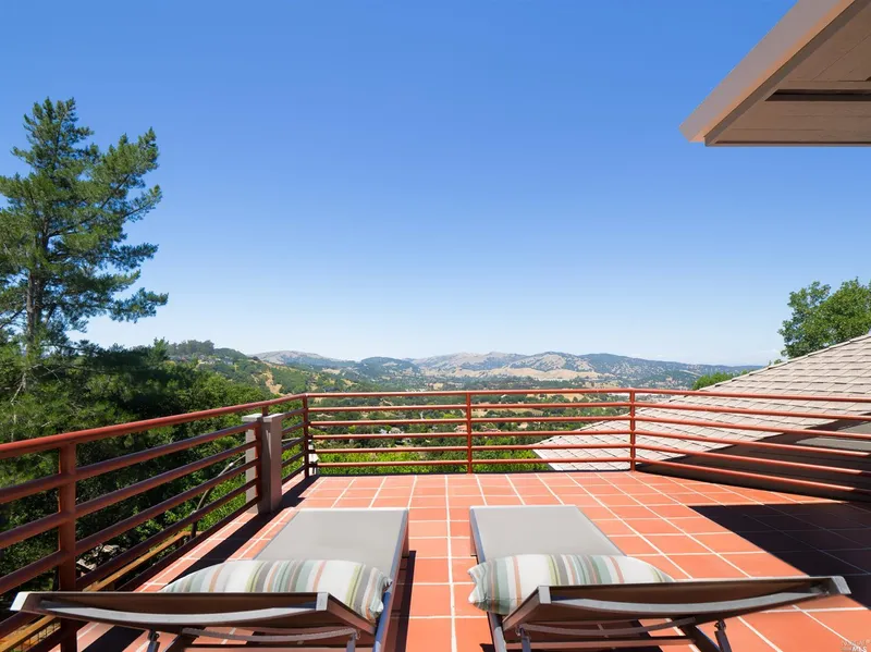 Relax in this spacious and elegant light-filled oasis on approx. 2.6 private acres. Wake up in the main suite with its soaring ceilings, fireplace, large en-suite bath, walk-through closet & private terrace. The updated kitchen with granite countertops opens to a spacious breakfast nook, a huge family room with fireplace, and wrap-around deck with views. On the main floor, high ceilings and a wall of windows with sweeping views of Lucas Valley fill the huge dining room and living room with natural light. One of the six bedrooms is conveniently located on the main floor, with a clever split powder room & shower and its own private deck. The lower level offers four more spacious bedrooms, each with their own deck. The sixth room with an en-suite bath and private entrance is ideal for an au-pair, home office, AirBnB. Unwind by the large lawn, or hang out in the cabin in the woods. You'll never feel cramped for space with four storage rooms (two of them truly enormous) and three-car garage