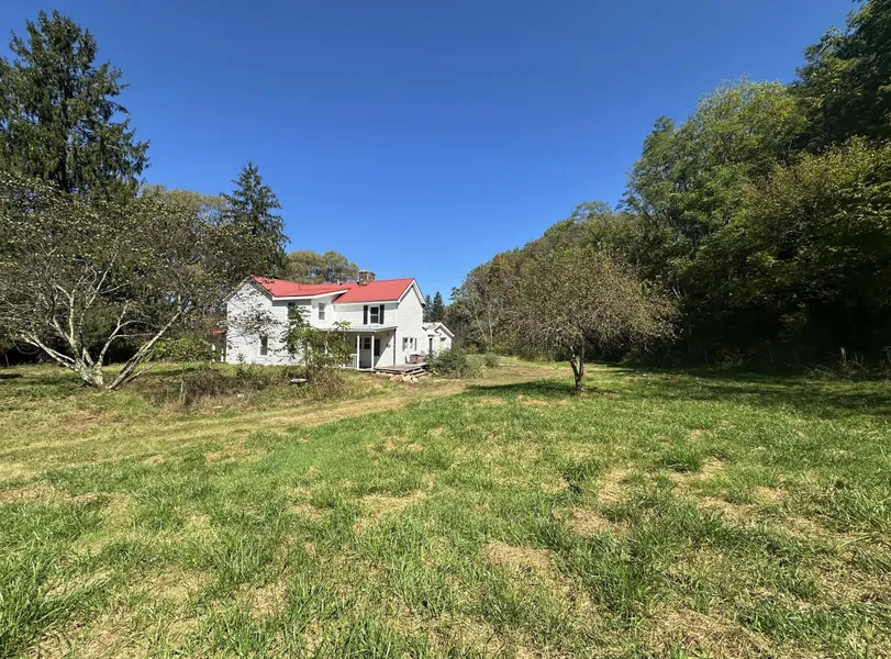 Farmhouse in Monroe County offers character and space on 2.6+/- acres. Outdoor living is a highlight with two covered porches, a large open-air deck, fencing, and an outbuilding. Inside, the main level includes a kitchen, dining room, living room, bedroom, and full bath for convenient first-floor living. Upstairs, you'll find a large landing, two bedrooms, a full bath, and a versatile partially finished room ideal as a bedroom, office, or storage. A generous area connected to the garage provides endless possibilities for a workshop, craft room, or additional storage. With historic charm, flexible living areas, and room to make it your own, this farmhouse is ready to welcome its next chapter. Conveniently located to Moncove Lake, Gap Mills Amish stores, and National Forest.