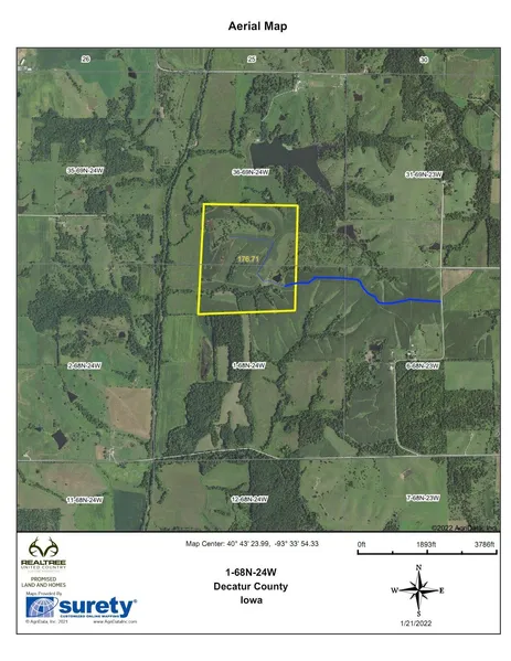 Looking for the best hunting location in the world? The Wayne County-Decatur County line in Southern Iowa is known for producing some of the best Boone and Crockett deer around. 200+ deer are harvested in this area yearly. I personally put the farm management plan together for this 176 acre farm and have been working on it myself to ensure success. Throughout this property over 1300 cedar trees have been planted, several acres of fall food plots have been planted, access trails have been established, tree stands have been hung, and crossings have been fixed. With multiple mature deer being recorded on camera already, this ideal farm is ready to hunt this fall. Also included is 1 pond and a deeded easement to access for the life of the property. This 176 acre farm sitting in the middle of the section will provide hunting opportunities like no other. The seclusion and access is like no other !! Very, Very special in my opinion. With 110tillable acres, there will be $20,900yearly payment to help cover cost. Call for details.