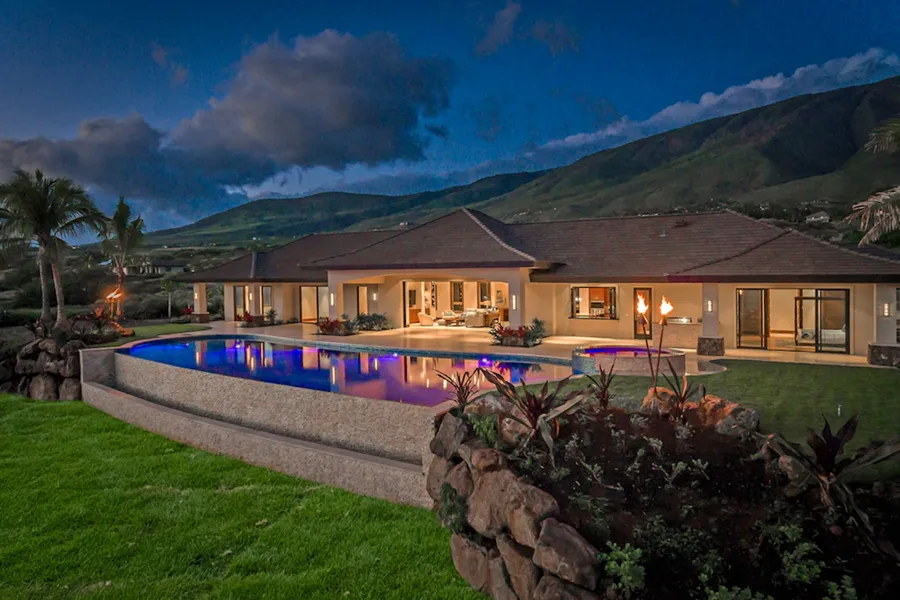 New luxury home with stunning ocean and mountain views, situated on over 1 acre in Launiupoko, one of West Maui's most sought-after and beloved neighborhoods. This single-level home will be meticulously crafted by one of Mauis most respected builders with the finest quality finishes and the latest in Hawaiian contemporary design. Perfection in open-concept living with a vaulted great room, dining area, gourmet kitchen appointed with high-end appliances, quartzite waterfall island with seating, and large walk-in pantry. Glass pocket door wall for seamless indoor-outdoor living with the expansive covered lanai, infinity pool & spa, and barbecue area. Separate den area with the 5th bedroom and bath (connected by the lanai roof) is perfect for guests, home office, or gym. Enjoy walking & hiking trails right in your neighborhood, or head the short distance down to Launiupoko Beach Park for family friendly surfing, swimming, and stand-up paddling. Take advantage of pre-construction on this lot and make it your dream home! Additional features: 3-car garage, central AC, private entry gate, and full landscape package. Completion expected May 2022. Disclaimer: Sample images shown are of completed homes built by the developer and DO NOT depict the actual construction, as this home is currently under construction, with grading under way to increase the views. Developer reserves the right to make changes during construction, and completed project will deviate from sample images shown. This is the main home lot of a 2-parcel CPR.
