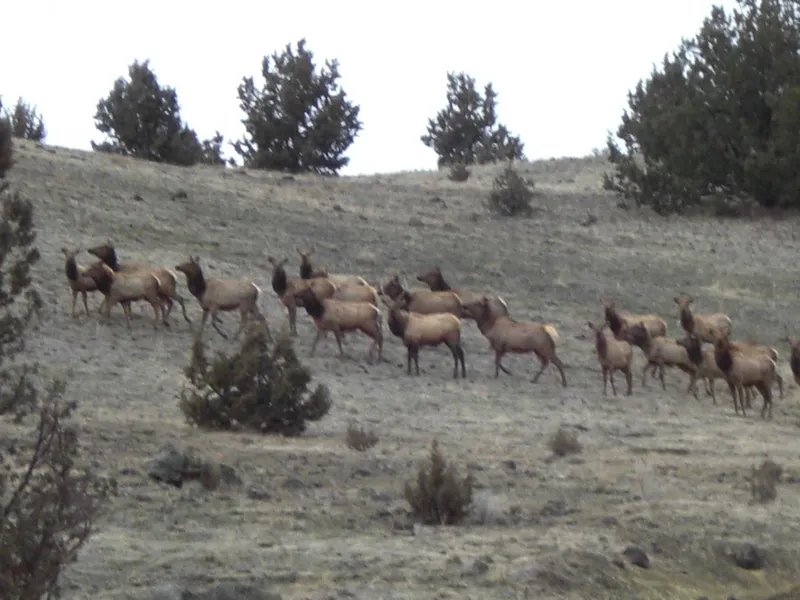 The owner has harvested an elk every year he has been there except for one year where he was laid up because of surgery. There are quite a few in there especially starting in July/August. It would be a great bow hunting area because of the springs and good cover. Buck hunting is also very good with good vistas to spot and hunt. In fact, that is the way that the owner hunts quite a few of the areas on the ranch. He spots the elk/deer and then arranges his hunt . Sometimes it is bedding them down and then making a hunt, but it depends on how fast they are moving. Turkeys are on the ranch and around the cabin. He has a great many pictures of animals that his game camera has taken. It is somewhat of a wild and secluded area to hunt but with great vistas and quite a few open areas.