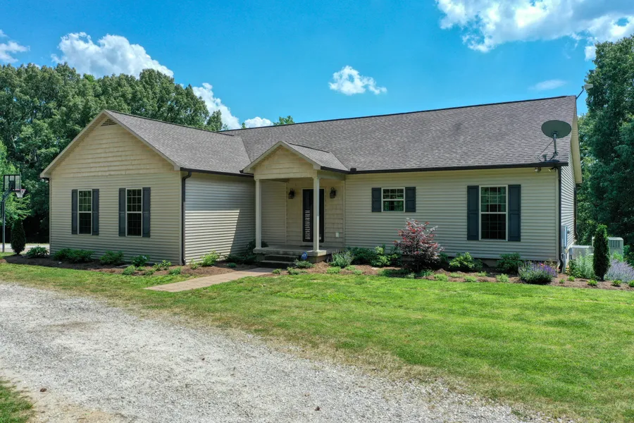 Located in quiet country setting on 25.20 acres is this custom built 4 bedroom 3 bath home. Open living, kitchen, dining area. Living area with vaulted ceiling, stone gas log fireplace and built ins provides views of the appealing back grounds. Split floor plan offers spacious master suite, 2 guest bedrooms and additional bath and large laundry room on the main level. Sit on the full length back porch and watch the children play or enjoy nature. Basement is great space for family room, game room or man cave. Acreage, a mix of open and wooded, could be home to horses or other animals. Abundant deer and turkey. This property offers so much.