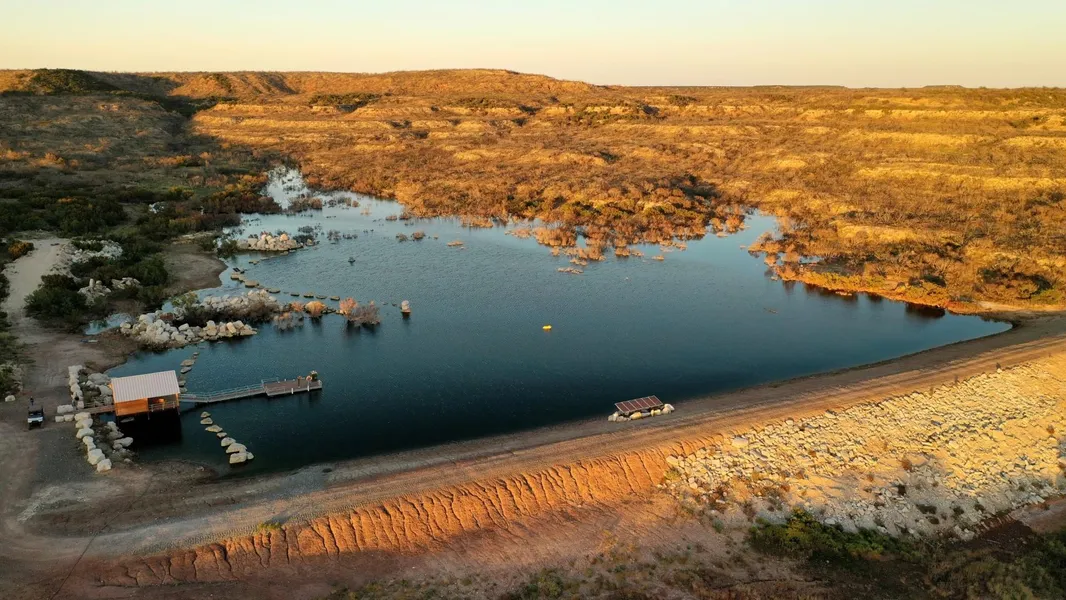 Whistling Winds Ranch offers a well-established road system, guiding guests to the recently created lakes on the property. The picturesque Devils Creek Lake lies at the center of the ranch, with its meandering bends and draws extending nearly half a mile upstream. Towards the West, Rock Lake, carved from gypsum canyons, boasts exceptionally deep and clear water, accompanied by a covered dock, ideal for trophy fishing for Florida bass and crappie. Additionally, a third recently constructed lake on the Western boundary awaits spring rains, completing the trio of exceptional lakes on the ranch.