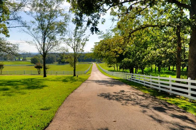This Gentleman's Ranch has has magnificant views of the improved pastures and surrounding countryside from the 9,400 sf, 6 BR/5 1/2 BA, custom home. After the long, fenced, drive to the tree covered top of the hill, you arrive at the beautifully designed and built one owner home. Coming through double entry doors, you are greeted in a grand entry hall with Alabama white marble and Gracie hand painted wall covering on gold ground. Formal living and dining rooms have large bay windows, silk on paper wall covering above chair rails. The DR has a large Venetian chandelier. The entire house has 5 to 7 part molding, much of it 12". The sweeping grand staircase is 54" wide.