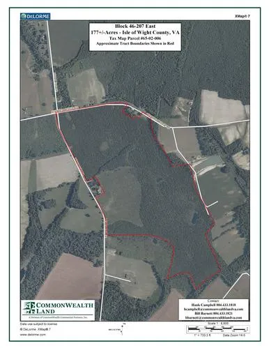 Excellent long-term timberland investment opportunity offering recreational potential located 4.6 miles north of Franklin less than a mile from US258 with 2,630' of frontage along VSR615 (Holly Hill Rd.) and 1,845' of frontage along VSR611(Joyners Bridge Rd.). The site is level and the timber is comprised of 148+/-acres of Loblolly pine established in 2003 and 28+/-acres of Loblolly pine established in 2008. It offers excellent wildlife habitat with strong populations of deer and turkeys. Contact Hank Campbell (804.433.1818) or Bill Barnett (804.433.1821)