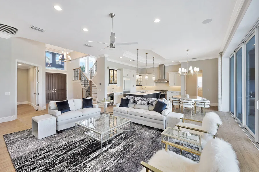 Look no further! Contemporary Water Direct 4 bedroom plus den, 4 bathroom custom home built in 2019. The property features a private dock with boat and jet ski lifts, giving you the freedom to explore the open waters whenever your heart desires. On entry to the property you will appreciate the open floor plan offering a contemporary great room with upgraded quartz countertops, Thermador gas stove and a hidden walk- in pantry. The Impact pocket sliders create a seamless transition as the great room opens up to the inviting outdoor living area offering a private pool, spa and built in outdoor kitchen. The ground floor offers a master suite, den, guest bedroom & bathroom and a large laundry room. A beautiful staircase leads you upstairs to the first floor living area which opens onto an open patio which offers breathtaking views down the canal. Two guest bedrooms and two full bathrooms complete the first floor. This home offers many upgrades including all impact glass, electric sun shades, electric hurricane shutters, hunter Douglas window coverings, 500lb propane tank and the seawall was new in 2018. A generator has just been installed and will be a great upgrade for the new buyer to enjoy. Don't miss out on this incredible opportunity to own your own piece of paradise. This is your chance to live the ultimate waterfront lifestyle while enjoying the true essence of coastal living.