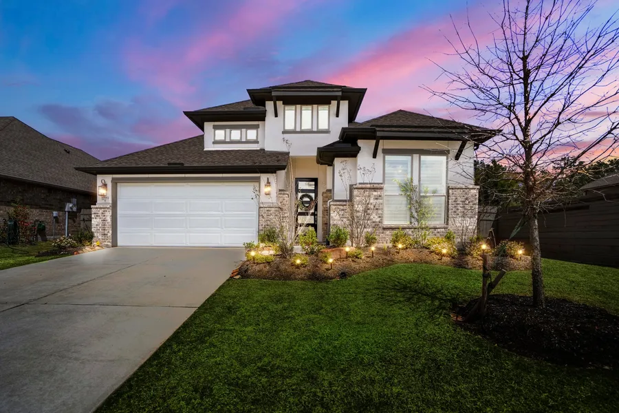 Almost new fabulous Coventry one story home in Artavia! Situated on a corner lot for some elbow room & walking trails in the back! TONS of updates, this all brick 4 bedroom & 3 bath home is warm & inviting! The entry greets you with 2 full bedrooms & a full bath on the right. A private guest suite with full bath down the hall on the left. A well appointed office with glass double doors is ready for productivity! A large kitchen island will be the heart of the home! This large open kitchen has tons of storage & is open to the dining area & family room with a stunning custom electric fireplace-wall. Tucked away is a large primary suite with another custom fireplace wall & a spa like bath. Plantation shutters throughout! Updated plumbing fitxtures everywhere, all new door handles, some new light fixures & custom features all over! Artavia is a master plan with more to offer than can be listed:Clubhouse, walking/biking trails, cafe, fishing pond, paddle boats, park, splash pad, gym & MORE!