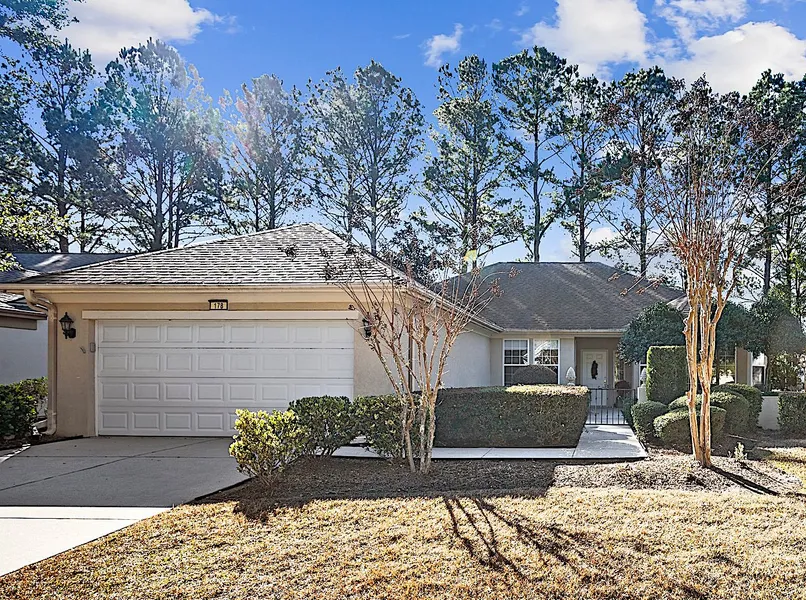 Convenient central location is the setting for this popular Hatteras Model. Large foyer welcomes you to the open great room which has wood floors. Eat-in kitchen has ample storage space, cherry cabinets with roll out shelves, granite countertops and a pantry closet. Den has new carpets and overlooks the front courtyard. Master bedroom with ensuite bath is very generous in size and guest bedroom, second bath with raised vanity, two hall closets and large laundry room round out the first floor. Garage has a 4’ extension, pull down stairs with floored attic space, extra cabinets, workbench and door to the outside. Enjoy the screened in porch on a nice l andscape lot. Clean stucco report available.