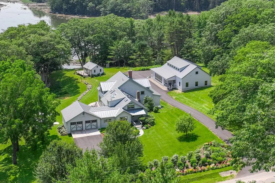 Located 5.5 miles up the Bagaduce River from Penobscot Bay and Castine, this one-of-a-kind home sits on over 10 acres of woodlands and fields with 600' of waterfront on the dynamic Johnson Point Narrows. Harbors seals swim through the ever-changing tidal current to sun themselves on nearby granite ledges. The well-maintained dock features a 10' x 36' float, making for easy boating access to explore the diverse wildlife of this unspoiled estuary. This high quality habitat is heavily used by migrating waterfowl, wading birds, and other wildlife. Bald eagles nest within view at a nearby island.In 1980 the original log home was lovingly restored, and in 1998 a contemporary addition was created to provide spacious, open living/kitchen/dining with a fabulous master suite with a sitting area above. Then, in 2010, a custom 2,500 sq. ft. art studio was constructed that would be perfect for any number of home businesses or and recreational activities. Ample natural light from the large clerestory windows above is complimented by additional linear, full-spectrum fluorescent and LED track lighting to create a soothing even light for any activity. The cottage at the waterfront provides a spectacular close up view of the river and is ideal for guests to totally 'let go' and take in the sights and sounds of the river wildlife and moving water. In addition to the rolling lawns and various gardens, there are two wood sheds, a lawnmower shed, garden shed and a well-established campfire area, plus the suspended two-story tree house. All are all well-maintained and provide special spaces for enjoyment. This is your chance to move to a totally private and serene setting while still be able to have a large home business or studio on the water. With 4,600 sq ft in the main house, a radiant-floor heated 2,600 sq ft. studio, plus the 380 sq ft cottage, for a total of 7,500 sq. ft. of heated living space, this property is something special.Newly paved driveways and exterior