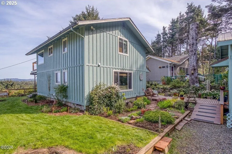 Welcome to your coastal haven with breathtaking ocean views! Situated above the coveted Southshore subdivision, this charming home offers the perfect blend of tranquility and convenience, with the beach just moments away at the end of the street. Featuring a thoughtful reversed floor plan, the home is designed to capture stunning ocean vistas from every angle. It boasts 2 spacious bedrooms, a den with a closet (perfect for additional sleeping space or a home office), and 2 full baths, making it ideal for both a vacation getaway or a comfortable year-round residence. The property is exceptionally private and meticulously maintained, offering a serene escape from the hustle and bustle. A fantastic bonus is the shed, equipped with water and electricityperfect for gardening, storage, or any number of creative uses. Just a short drive to the heart of town, with access to hiking trails, fishing, and all the outdoor activities the Oregon Coast has to offer, this is the perfect spot to embrace the relaxed beach lifestyle. Don't miss your opportunity to own this well-loved property with spectacular ocean views. Whether you're seeking a nice retreat or a full-time residence, this home is the ideal coastal sanctuary!