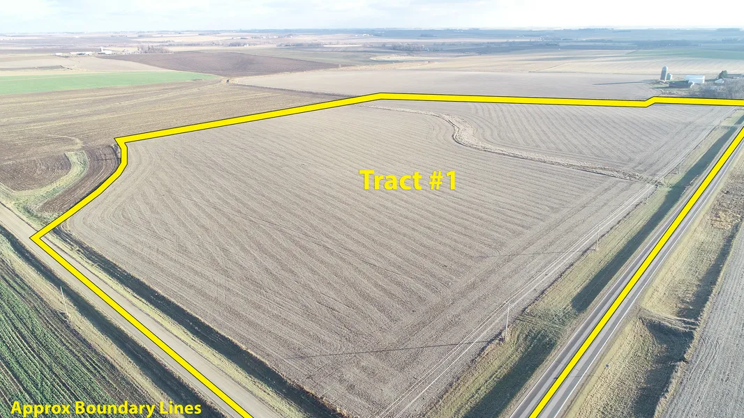 Farm Location: From the corner of 400th St. & Kingbird Ave in Newkirk, IA go South on Kingbird Ave for 2 miles to Tract 1. Tract 1 is located in the Southeast corner of the intersection of 420th St & Kingbird Ave. Tract 2 is located directly South of Tract 1 and if it is sold to someone other than the buyer of Tract 1 or 3, separate access from Kingbird Ave will be granted to the buyer of Tract 2. Tract 3 is located directly South of Tract 2 and is accessed by going one mile South from Tract 1 on Kingbird Ave to 430th St. then going 1/4 mile East on 430th St. to Tract 3. Tract 3 is on the North side of 430th St.