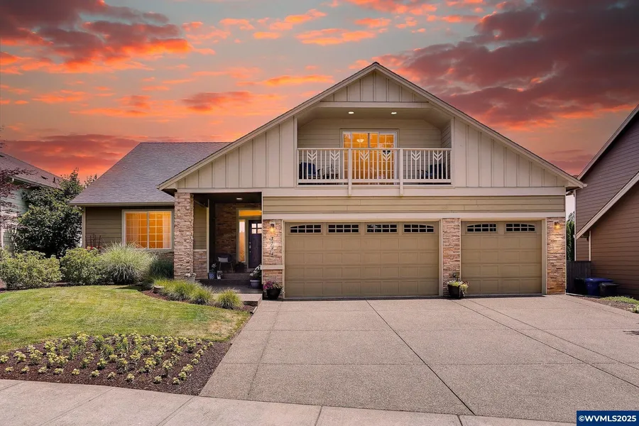Welcome home to West Meadows Estates! This well-maintained 4bed,2bath craftsman offers nearly 2,400 sqft of comfortable single-level living, a versatile upstairs bonus room w/ private balcony, ideal for enjoying morning coffee, evening sunsets, or a breath of fresh air. Open-concept layout features rich hardwood floors and cozy gas fireplace, flowing seamlessly to a covered patio and fenced backyard—perfect for year-round entertaining. Spacious kitchen includes gas range, island seating,and ample storage. The main-level primary suite boasts a walk-in closet and dual sinks. A 3-car garage provides plenty of space for hobbies and gear. Mature landscaping, a sprinkler system, and scenic territorial views make this home truly move-in ready. Tucked away in a quiet, established neighborhood near parks, schools, and all the conveniences of West Salem.