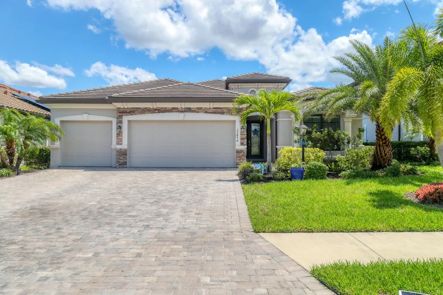 Welcome to your Florida dream home in Polo Run — the first solar-powered neighborhood in Lakewood Ranch. This stunning Lennar Princeton II model offers a blend of luxury, energy efficiency and peace of mind, all set on a premium homesite with breathtaking sunrise and sunset views over the water. This home features four spacious bedrooms and two baths within an open floor plan. Elegant architectural details include arched doorways, crown molding, neutral tile flooring and tray ceiling with custom wood inlays. This home is designed for gathering with the central, airy great room, featuring a newly installed shiplap accent wall and built-in electric fireplace with shelving (2023). Right off the great room, the kitchen offers a setting for entertaining with its angled island, pendant lighting, white cabinetry, stainless steel appliances and a cozy breakfast nook overlooking the pool. Sliding glass doors lead to an expansive paver lanai where you can relax beside your private saltwater pool and spa, heated by solar power and updated with a new pool pump in 2023. The lanai offers spectacular water views and a tranquil setting to enjoy morning coffee and evening sunsets. The serene primary suite also enjoys sweeping lake views and features a tray ceiling, large walk-in closet and a spacious en-suite bath with dual sinks and a walk-in shower. Three additional bedrooms and a guest bath offer comfort and flexibility for family and guests. This home is filled with upgrades, including a new HVAC system and Halo UV light air purifier installed in 2023, a tankless water heater, a water softener, hurricane shutters, and a whole-home gas generator for added security and efficiency. Curb appeal abounds with a tasteful stone façade, paver driveway and lush tropical landscaping, all maintained by the HOA. A spacious three-car garage provides plenty of room for vehicles and storage. Polo Run residents enjoy a vibrant, maintenance-free lifestyle with access to resort-style amenities, including a clubhouse, resort-style pool, fitness center, bocce ball, tennis, pickleball and basketball courts. The community also features a dog park, children's playground, and a full calendar of social activities like exercise classes, water aerobics, trivia nights and card games. Conveniently near shopping, dining and with quick access to Interstate 75, this solar-powered home offers luxury, location and peace of mind in one of Lakewood Ranch's premier communities. Don't miss your opportunity to live beautifully and sustainably in Polo Run and schedule your private tour today.