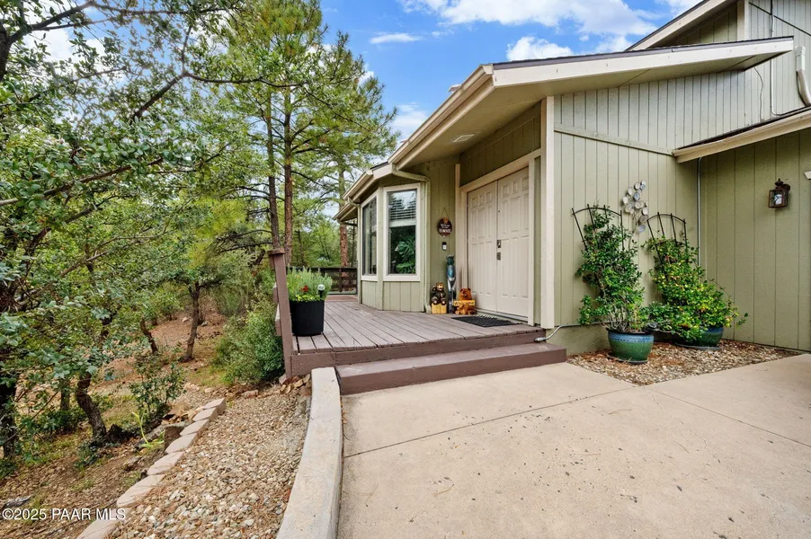 Every now and then, you run across a house that mere words don't adequately describe - this lovely home needs to be experienced. It sits on large fenced lot - minutes from Downtown Prescott. Family commitments are forcing the owner's move of what was their forever home. Here's a unique opportunity to own a beautifully laid out residence with multiple upgrades, and main floor living. The 3 bedroom, 2.5 bath home features contemporary vinyl plank flooring, energy efficient AC/Heating splits, new conventional/air fryer oven and total yard drip irrigation. Situated on 2/3 of an acre in a fire-wise community, just 2.5 miles from downtown Prescott, it offers both privacy and convenience. The cozy primary bedroom is on the first floor, with two roomy walk in closets and sliders onto a spacious deck where you can enjoy the wilderness setting. Enjoy a double-sink bath with tub/shower combo plus full laundry for ultimate convenience off the primary bedroom. The kitchen features a breakfast bar that opens up to the dining area and vaulted-ceiling living room. Granite counter tops throughout add to the home's beauty. Upstairs, you'll find two spacious bedrooms--large enough for king beds--along with a full bath, ideal for kids or visiting guests. Outside, the fenced raised garden is perfect for growing your own vegetables, while the expansive fenced backyard provides a secure retreat for family, pets, and entertaining. The house also includes four energy-efficient air conditioning splits, allowing for customized heating and cooling in individual rooms. Community amenities include a pool and tennis courts just a short walk away, and you're only minutes from the rodeo grounds, Capital Canyon Country Club, and all the dining, shopping, and entertainment downtown Prescott has to offer. Don't miss the chance to own this gem--ready to be YOUR forever home. Please note: if you're viewing this outside of MLS, some information may be incorrect regarding expenses - the HOA fee is $25 per month which includes snow removal service.