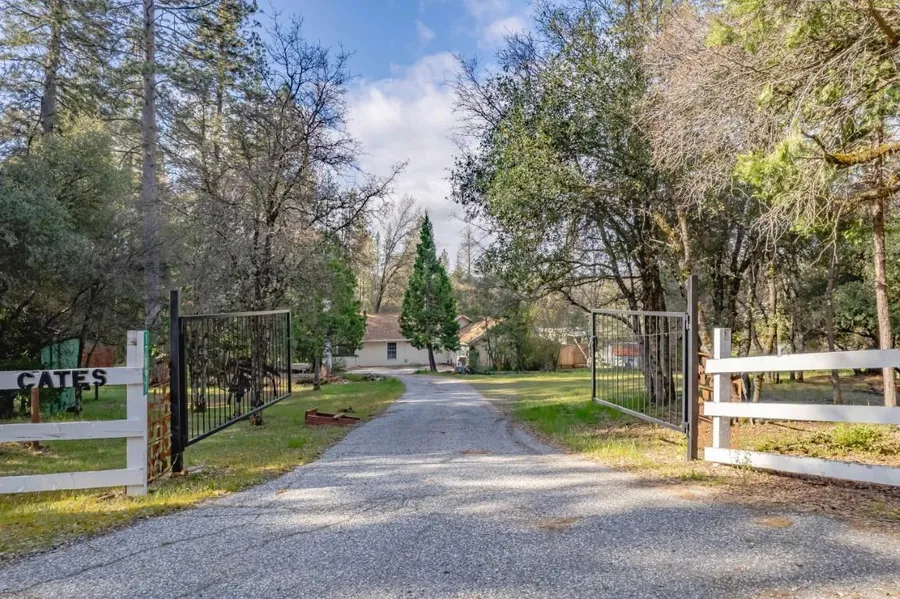 Charming 3 bedroom cottage with garage on 4 plus acres, room for second home. Mostly fenced, add some cross fencing for livestock if desired. Zoned RA for AG uses and residential. Some fruit trees- great place for an orchard or vineyard. Home has had upgrades over the years-kitchen in 1983, solar in 2013 and a roof in 2016. Solar system provides current electrical needs. Home features oak floors, tile kitchen and bath and has a lot of charm. Enclosed front porch and roomy deck in the rear. Numerous outbuildings including a "he/she shed" and a large shop. NID creek meanders through with irrigation on standby.