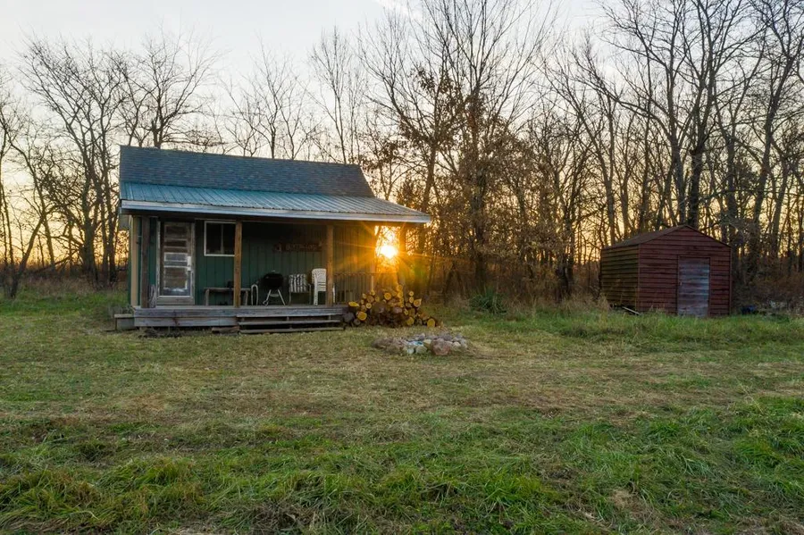 The property offers an off-grid 308 square foot cabin with a wood stove, loft for sleeping, and an 8’ wide covered front porch. Bring your generator, plug it into the cabin, and enjoy your time relaxing with your family or hunting buddies on the porch or around the campfire.
