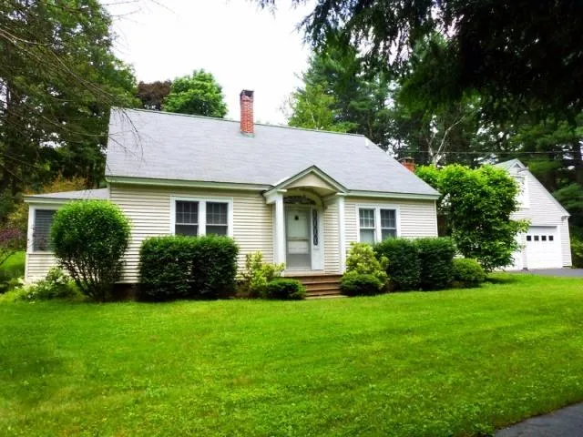 Berkshire Property for sale Williamstown Massachusetts. This lovely home is screened from sight of the road by a handsome row of mature evergreen trees and other landscaping. You will find this home very comfortable and wonderfully maintained with four bedrooms plus two and a half baths (one bedroom and full bath on the ground floor making it handicap friendly). The expanded Cape Style home includes an attached two or three car garage with lots of storage space. Enjoy traditional hardwood floors throughout the home while appreciating the classic formal dining and formal living room with a wood burning fireplace for ambience.