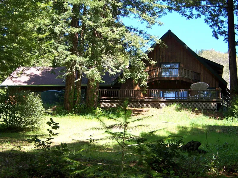 Towering REdwoods, Sunny Meadows and a lovely cedar home on 10 acres. The wonderfully cozy cedar home highlights include a large, country kitchen open to the Great Room, beautiful views, inviting upper and lower decks, a wonderful master suite and a guest bedroom with an outside entrance. RAised garden beds, a great well, a large 2-car garage/workshop (760 sq ft) with a full mezzanine (600 sq ft) are other highlights.