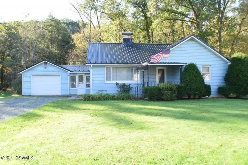 White Deer Pike this two-bedroom block ranch with vinyl siding has a kitchen with breakfast bar, dining room with sliding door to deck and partially wood backyard to the creek, living room with a brick fireplace and coal stove insert, stairway to attic which is good for storage, small breezeway between the house and one car attached garage. This home has a metal roof, economical natural gas heat with an Aqua Balance two year old furnace and updated electrical box. Flood insurance is between $1,200 and $1,300 annually.