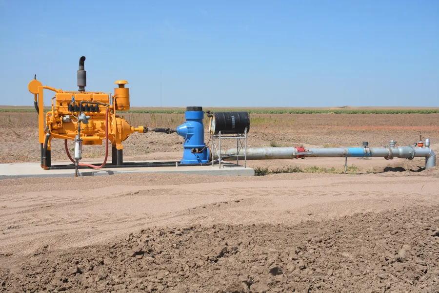 The owner has drilled a new irrigation well at the northwest corner of the southwest quarter of section 14 and installed a new turbine pump and gearhead powered by a natural gas fueled engine.