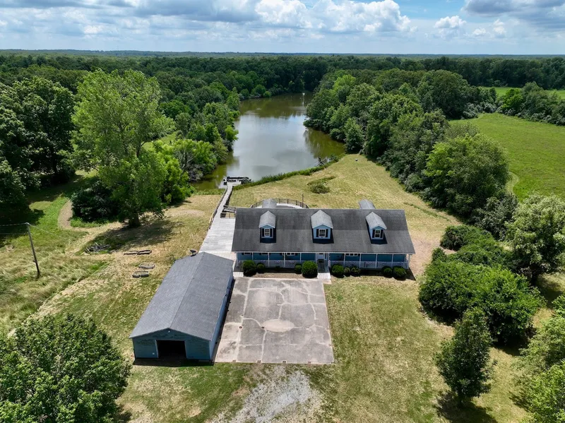 This large home with scenic views overlooking a 5+/- acre lake offers an ideal investment opportunity for a VRBO or flip house. Properties like this have sold in Jefferson County for up to $700,000 move-in ready. The house is unfinished and in the process of remodeling, providing a blank canvas for your vision. The main floor spans 2560 sq. ft., the basement offers an additional 2650 sq. ft., and the upstairs has 1159 sq. ft. of living space. The home features a geothermal system, ensuring energy efficiency. The large back deck overlooks the lake, perfect for relaxation and entertainment. Additional features include framework for an above-ground pool, wooden walkway to the pond, a large yard with landscaping and shade trees, a concrete parking area, and a large, detached garage. The private drive adds to the property's appeal. The 5+/- acre lake provides fishing and boating opportunities. With 5+/- acres of pasture and 6+/- timbered acres, the property offers diverse landscapes. Paths and mowed trails throughout the property allow for easy exploration. The area is rich with wildlife, enhancing its natural charm. This property combines potential, natural beauty, and recreational opportunities, making it an excellent investment. Schedule your private tour today to explore this exceptional opportunity!