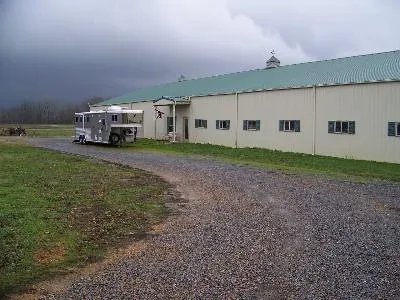 10,500 sq. ft. metal building with 1600 sq.ft. of living space, 2 car attached garage; 8000 sq.ft. arena--8 horse stalls, wash bay, and heated tie area. Also a shed and barn. 2 easements to property.
