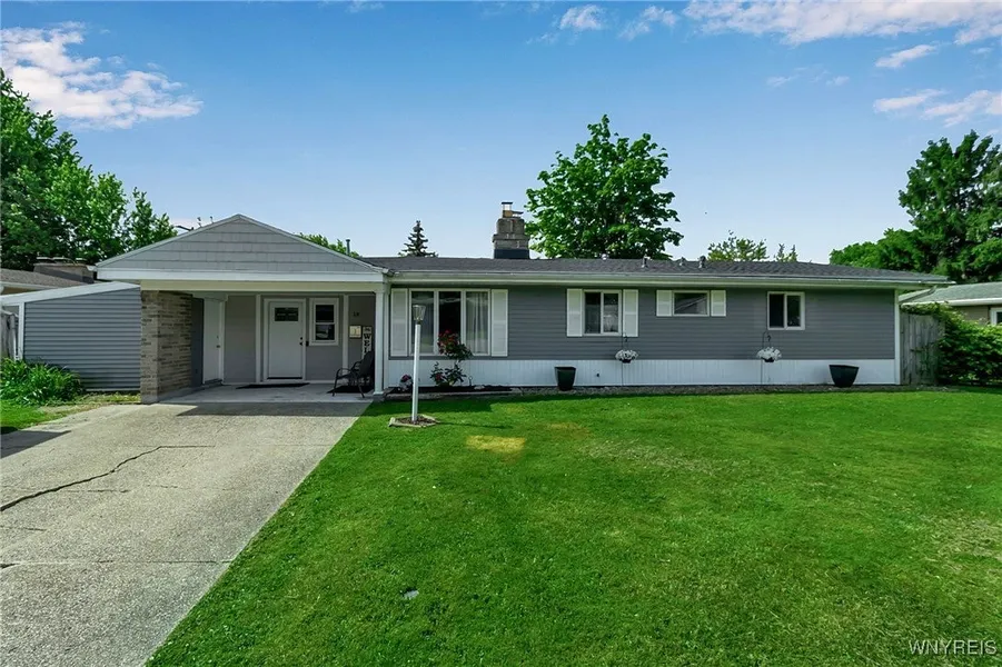 Square Footage differs from tax records per appraiser see attachment. Welcome to 18 Albert Court, nestled in the Lancaster School District on a peaceful cul-de-sac just off Transit Road. High vaulted ceilings invite you in as the skylights bring plenty of natural light to greet you. Step out back to enjoy the concrete patio and fenced yard. Newly remodeled flooring including porcelain tile floor and herringbone engineered hardwood. Freshly painted interior and a completely remodeled full bath with built in shower niche, rainfall shower head, body sprayer, new lighting and vanity. The expanded third bedroom features a spacious layout with a cathedral ceiling, plus a versatile adjoining walk-through suite that can be used as a home office or stylish glam space. Other updates include a partial roof tear off, enclosed and remodeled mud room, new HWT installed in 2021, almost all new windows, and new HVAC system has been installed in the living room. Main HVAC system has been recently updated and a new fan has been installed. Offers will be reviewed Monday June 23rd at 4pm.