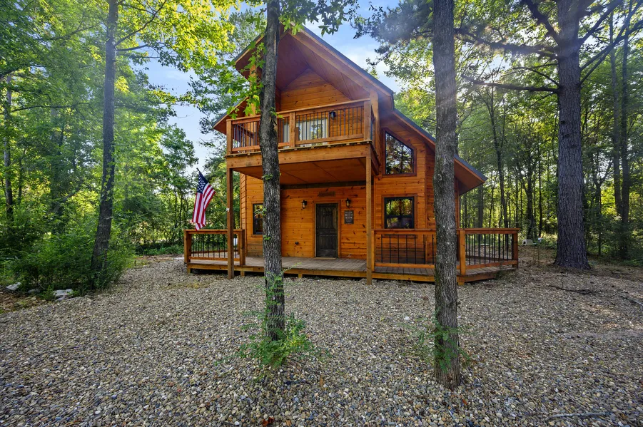 MOTIVATED SELLER!!! EAGLE'S PERCH IS A BRAND-NEW MOVE-IN READY SECLUDED CABIN NEAR THE HEART OF BROKEN BOW!! This rustic retreat offers a fantastic opportunity to create your own residence or venture into the booming vacation rental market of Broken Bow and Hochatown. Upon entering this home, you will be greeted by a beautifully appointed kitchen complete with granite countertops, stained concrete flooring and stainless-steel appliances, all which stay with the house. You will also be welcomed by one of two fireplaces and a nice sized living room, perfect for family game nights being warmed by the fire. Exploring the first floor further and you will find the back door will lead you to your own little calming oasis. You can sit outside in the hot tub on cool nights and then warm yourself up by the outside fireplace listening to the crickets and watching lightening bugs. Once you're relaxed and ready for bed, you can travel upstairs to the primary bedroom and bathroom and a gorgeous master bathroom along with a large loft/game room (pool table coming soon) that also provides ample room for extra sleeping arrangements for quests. This room also has a balcony that overlooks the beautiful scenery right out your back door! If you're looking for food and fun, the cabin is conveniently located just a short distance to the bustling towns of Hochatown and Broken Bow and also just a hop, skip and a jump to the gorgeous Broken Bow lake and Beavers Bend State Park for all the outdoor enthusiasts. Call for a showing today!