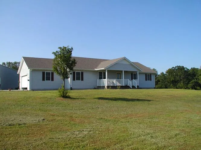 Nice 1680 sq. ft. ranch home close to the 280-acre county lake. It sits on a good paved road with great views from any window. The room sizes are living room 15X24, eat-in kitchen 15X20, utility room 5X7, bedrooms 12X15, 12X12, 12X12, hall bath 5X8 and master bath 8X9. It sits on a full walkout basement. The acreage has lots of good timber with a trail running thru it. There is access to the lake from the timber. The lake has excellent fishing. Deer and turkey are all around. There is a 45X30 metal building with a 14 ft. door on one end and an 8X7 on the other and it has a concrete floor. Sit back and enjoy the magnificent view from your covered porch or deck.