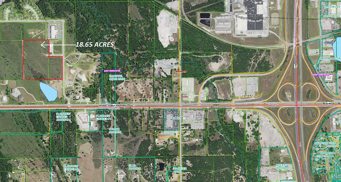 18.65 Acres of unlimited investment opportunity for growth on the leading age of Ardmore's large expansion. Look at the maps above and note how the new construction has occurred all around this tract. Located only 1 minute away from Interstate 35 on to Highway 70 west to Travertine Road. Concrete drive ways already installed on Travertine Road for a new business or housing developement.