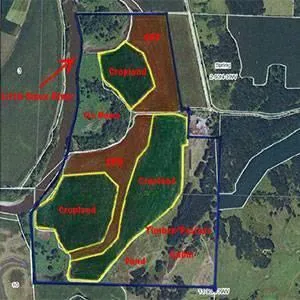 Description: The Bay Breeze farm offers the best of both worlds - recreation and farm income. For the 2013 crop year, there will be 63 tillable acres and 29 acres of CRP. The balance of the property is burr oak timber, pasture land, Little Sioux River frontage with oxbows, pond area and cabin.