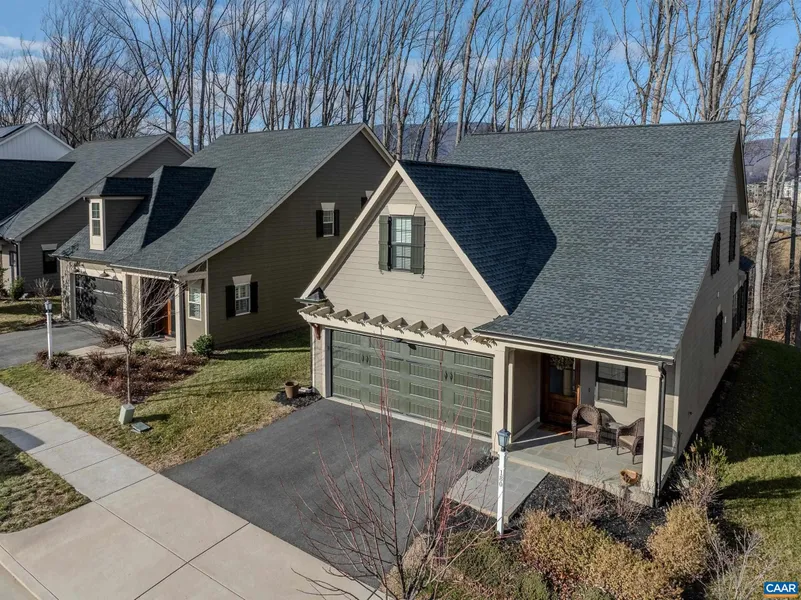 Beautiful move-in ready home with one-level living and serene, wooded and seasonal mountain views from the bluestone patio. This Craig Builders home with neutral paints and low maintenance Luxury Vinyl flooring features a large open kitchen/dining/great room area with beautiful stone accent wall and two-sided gas fireplace. Custom window treatments throughout the home provide privacy and light control. Gourmet kitchen features white cabinets, honed granite countertops, Whirlpool stainless steel appliances and tile backsplash. Work from home in the home office or create a playroom or den. Primary bedroom on main floor features a large walk-in closet and ensuite bathroom with double sink vanity and large frameless glass, tiled shower. Second floor features a spacious loft space that could be a media area or play room plus two large bedrooms and a full bathroom. Oversized two-car garage with extra wide door for large cars, features a utility sink too, and Generac generator powers the essentials during a winter storm for peace of mind!