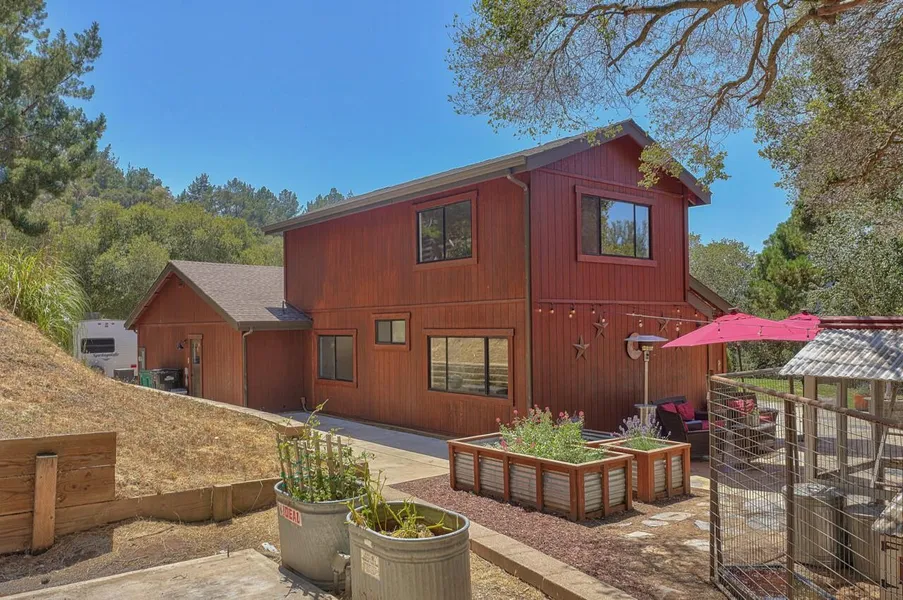 Live, Laugh and Love in this beautifully inviting farmhouse situated on a secluded, oak studded 2.6 acre lot that boasts a fully fenced pasture with water hook-ups for your horses, a deluxe chicken coop and parking for large vehicles. This charming home features vaulted ceilings, a lovely open floorplan, freshly painted interior & exterior paint, new flooring, furnace & water heater and a brand-new stove & vent. New plumbing, fixtures & valves plus a new main electrical panel with updated electrical throughout the home. The sophisticated country kitchen & adjoining sunny, dining area are the heart of the home where you can enjoy cozy family dinners or cooking for a crowd, The living room, with its soaring ceilings & dramatic fireplace, offers French doors that lead to the stunning paved patio that has hosted weddings, baby showers, movie nights & quiet romantic dinners for two. Enjoy your animals, have a party, nap in the hammock or cozy up by the firepit. This is your forever home!