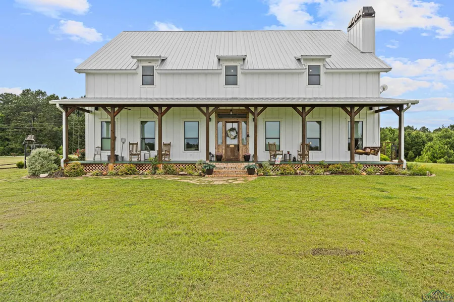 Welcome to a once-in-a-lifetime opportunity to own a breathtaking estate, set high on a hilltop within an exclusive gated equestrian community. Built in 2021, this one-of-a-kind Masterpiece blends modern luxury with timeless farmhouse charm, nestled on over 9 acres of rolling land that offers privacy, peace, and panoramic views. Spanning over 4800 square feet, this home is filled with custom touches and thoughtful detail throughout — from vaulted ceilings and architectural woodwork to historic accents like the reclaimed fireplace mantle that brings warmth and character to the living space. Step inside and discover an open, light-filled layout perfect for both everyday living and entertaining. The home features a personal gym, media room with built-in projection system, and is solar powered with a whole-home generator, offering efficiency and peace of mind year-round. Outdoors, your private oasis awaits — a gorgeous in-ground pool framed by a beautiful wooden privacy fence, ideal for relaxing or hosting guests. A surround sound stereo system makes the outdoor entertaining even more enhanced. The home also overlooks a tranquil pond with a pier, creating a picturesque backdrop for morning coffee or sunset evenings. As part of an exclusive community of only 11 homeowners sharing 360 private acres, you’ll enjoy access to a scenic community pond with a covered deck plus many more, perfect for gatherings with friends and neighbors. Horse lovers will appreciate the equestrian lifestyle and ample space to ride and trails to roam. With its unmatched charm, unique design, and breathtaking setting, this is more than a home — it's a legacy property. There's truly nothing else like it.