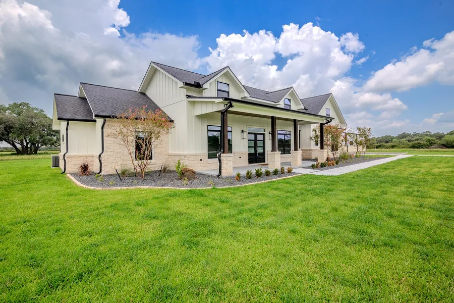 Welcome to this award winning 2024 Parade of Homes masterpiece. This home is located in the beautiful Garcitas Creek Ranch Estates. This 900 acre master planned countryside community is surrounded by wildlife, mature oak trees, and exceptional schools. This home, a 2,983 sq ft Modern Farmhouse located on six acres, features architectural inspired designs along with warm inviting color selections throughout and exceptional interior finishes. This home features 3 bedrooms, 2.5 bathrooms, an office and also includes an upstairs loft with an additional half bath. The living room invites you to sit by the ventless fireplace while admiring a 14 cathedral ceiling which continues onto an oversized patio perfect for entertaining and enjoying those beautiful South Texas sunsets. The kitchen features quartzite countertops, an oversized island, commercial grade appliances and a Butlers walk-in pantry. A well designed laundry room is attached to the master closet making it efficient for everyday laundry duty. The spacious master suite also includes a tray ceiling accompanied by a master bath with an oversized walk-in shower and well designed master closet. Finally, there is a 30x40 insulated workshop next to the home with large garage door and side entrance.