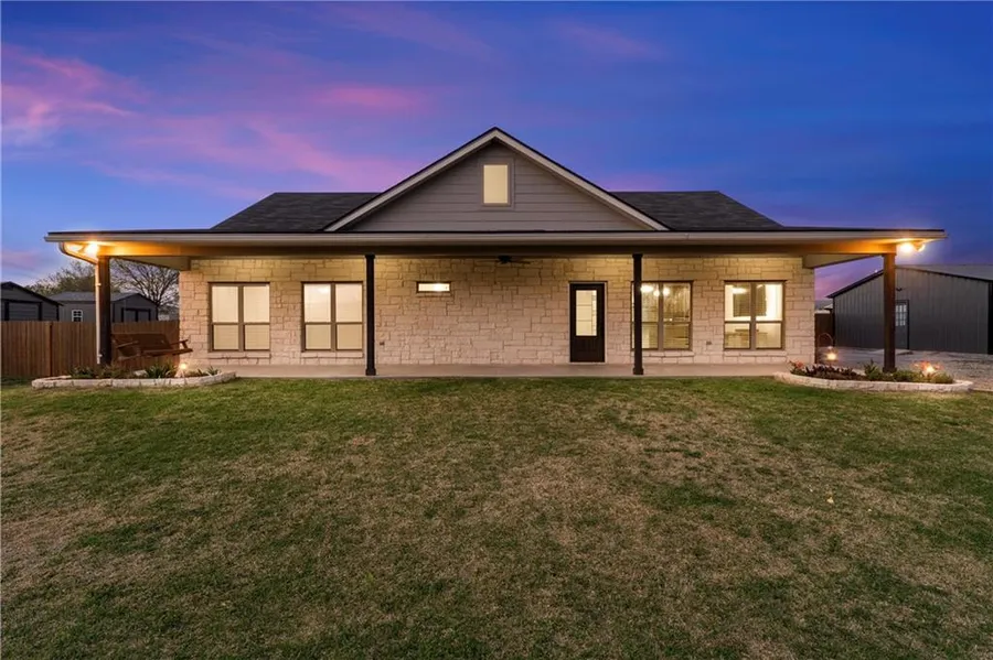 Country living at its finest in Robinson,Texas with 1.00 -/+ acre! You'll fall in love with this modern farmhouse that features 3 bedrooms, 2.5 bathrooms plus a guest house that 480.0sqft. Pulling up you will admire the beautiful front porch, once stepping through the front your invited to open floor plan with large windows filling the living /dining/kitchen space with natural lighting. The fabulous kitchen features custom cabinets, granite countertops an oversized intricate island with extra seating making the perfect place for entertaining. The adjacent dining area features double doors opening to the outdoor covered patio making outdoor dining a breeze in the outdoor kitchen. Down the hall is the spacious master suitewith its own master bath featuring a dual vanities, tiled walk-in shower and walk-in closet with built-in. Two secondary bedrooms share a jack and jill bathroom.Deciding between the beautiful interior and the relaxing exterior spaces will be challenging!!The guest house features concrete floors, 1 full bathroom, utility room and its own private back patio. Other highlights includes, foam insulation, recessed lighting, double pane windows, 11X40 storage building and much more to mention. Come view it today!