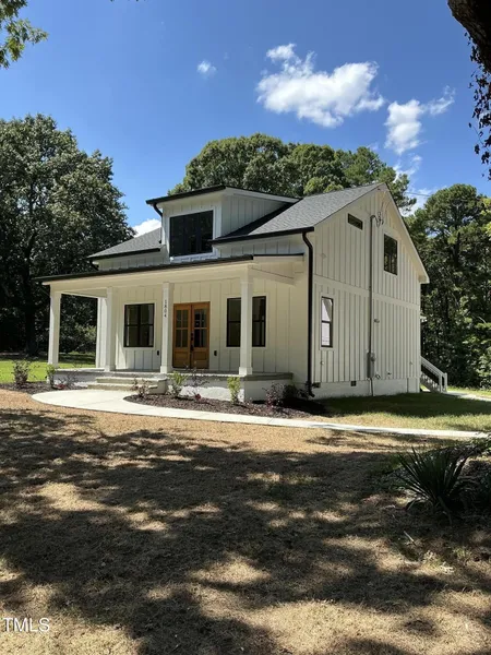 NW Raleigh home with NO HOA! Completely new construction home build on an existing foundation and floor system. This homes sits on 0.6 acres and has a nice size front porch that's perfect for rocking and enjoying the beautiful front yard. You will find a kitchen which a large island that is open to the family room which makes entertaining easy! Cooks will enjoy all the fabulous upgrades! Quartz counter top, new appliance and plenty of storage. The laundry room is huge and offers additional storage. Hardwood floor through all the first floor you will also find the owner's suite on the first floor, master bathroom with a walk-in tiled shower with a glass enclosure. Very convenient 1/2 bath for any visits. Going to the second floor beautiful wood stairs with nice rail. You will also find 2 other nice size secondary bedrooms on this second floor as well as an extra room for office/flex space and a hall bathroom with a tiled shower. This home offers wonderful entertaining space in the back porch area which features a nice size outdoor area for dinning and grilling. Another cool feature about this home is that it offers a brand new oversize detached garage with a second floor for gym/flex space. New septic and Well have been placed on this house (2025). This home is convenient to RDU airport, RTP, minutes to shops, restaurants and Falls Lake area. You will enjoy living in the city with plenty of the privacy on this home!